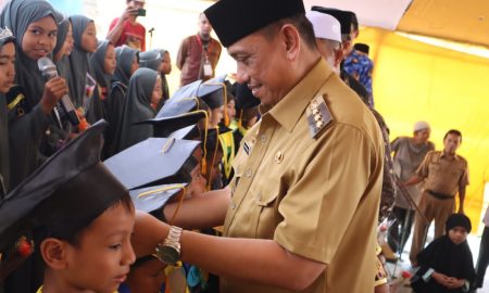 Bupati Wajo, Amran Mahmud menghadiri wisuda santri Majelis Qurra’ Wal Huffaz As’adiyah Ummil Hasanah Lompo, Kecamatan Tempe yang digelar di Ruang Pola...