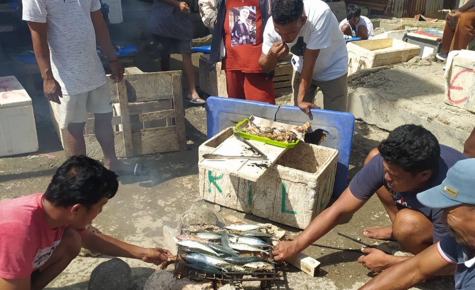 SELAYAR, EDUNEWS.ID – Puluhan penjual ikan lakukan aksi simbolis dengan membakar ikan di area Pasar PPI Bonehalang, Selayar, Kamis (19/1/2023).