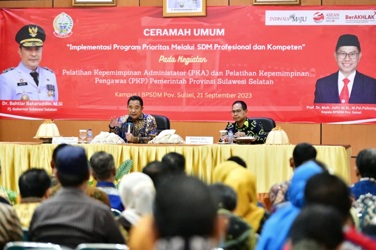 Sementara itu, Kepala BPSDM Sulsel, Prof. Dr. Muhammad Jufri menyampaikan terima kasih dan selamat datang kepada Pj Gubernur Sulsel atas kesempatannya hadir dalam acara diklat BPSDM Sulsel.