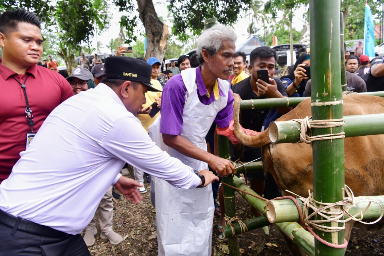 Bantuan lainnya, Rp200 juta untuk Kelompok Tani Kampung Ternak, terdiri dari 5 ekor sapi Bali betina, 1 unit kandang dan 10.000 stek bibit rumput odot.
