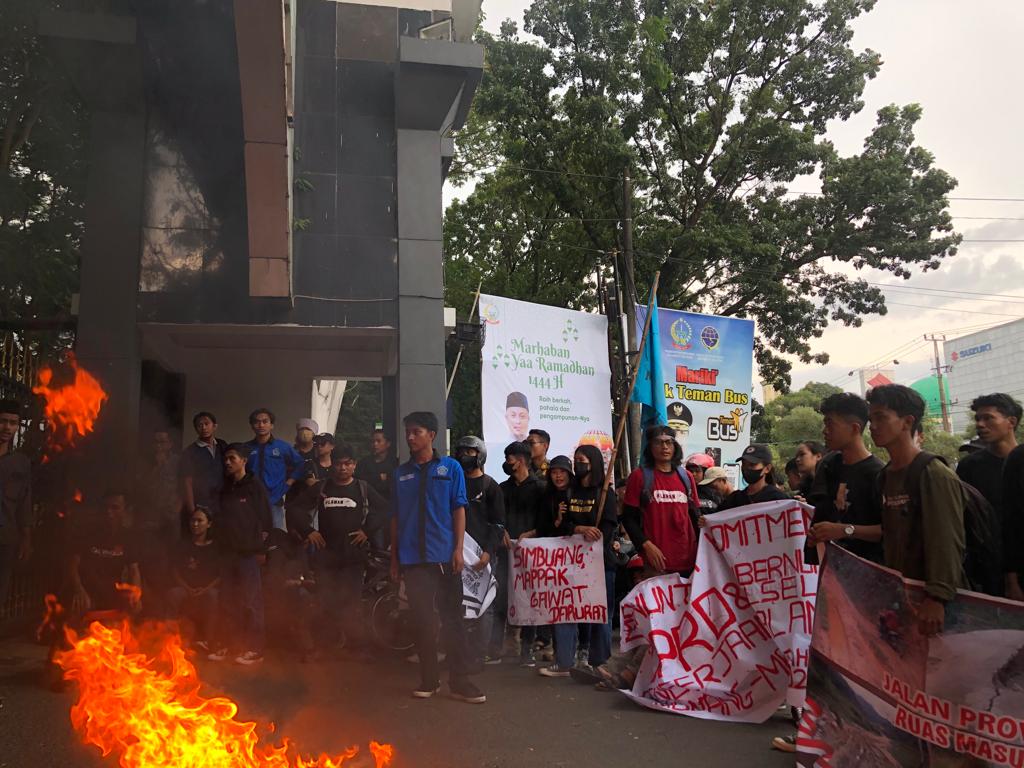 Massa aksi juga meminta DPRD Sulsel serius dalam mengawasi alokasi anggaran pembangunan jalan ruas Passobo-Matangli-Masuppu-Batas Kabupaten Pinrang.