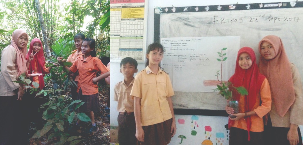 Setiap kelompok siswa ditugaskan untuk mengambil satu jenis tumbuhan dan menanam kembali dalam botol bekas air kemasan berukuran 1,5 liter yang sudah diberi lubang di bawahnya dan diberi tanah. “Saya juga ikut membantu siswa mengambil tanaman tersebut untuk memastikan mereka mengambilnya dengan benar agar bisa terus tumbuh,” kata Esra menceritakan proses pembelajaran yang diampunya.