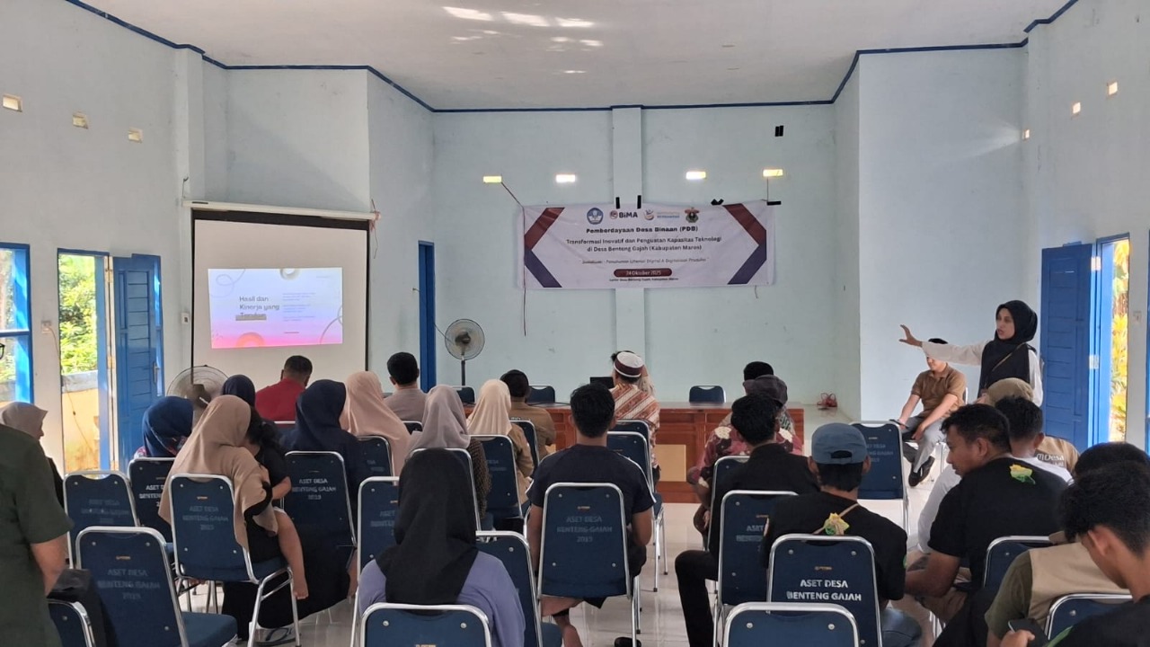 MAROS, EDUNEWS.ID— Tim Pengabdian Desa Binaan (PDB) Universitas Hasanuddin menggelar sosialisasi bertopik digitalisasi usaha desa sebagai tahap awal pembinaan di Desa Benteng Gajah, Kabupaten Maros, Jumat (24/10/2025).