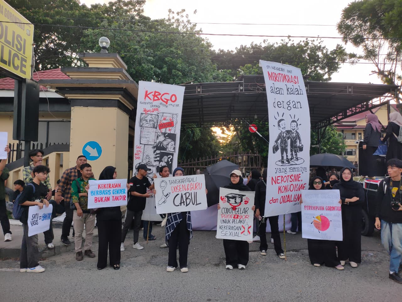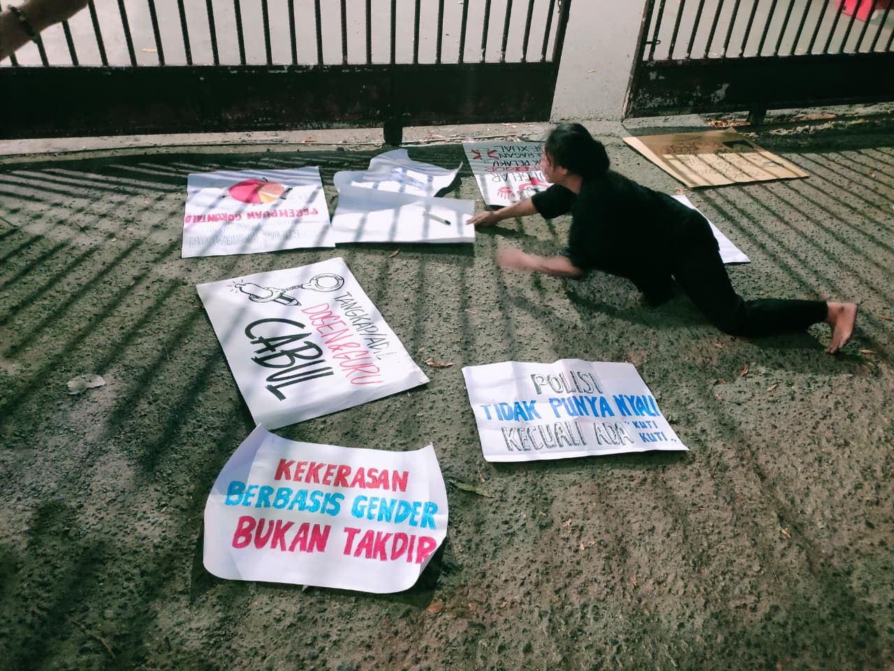 Berbagai poster tuntutan ditampilkan, menyoroti nepotisme, kekerasan seksual, dan impunitas. (Foto: Faradila Alim)