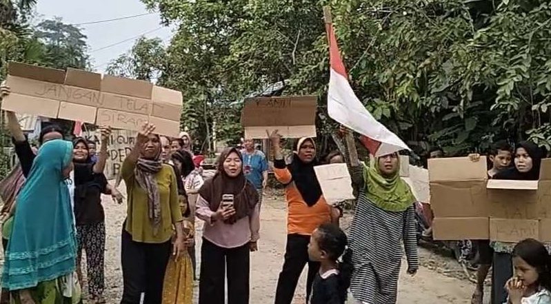 JAMBI, EDUNEWS.ID – Massa aksi dari kalangan emak-emak protes pengerjaan proyek jalan Tol Betung-Jambi lantaran merugikan warga.