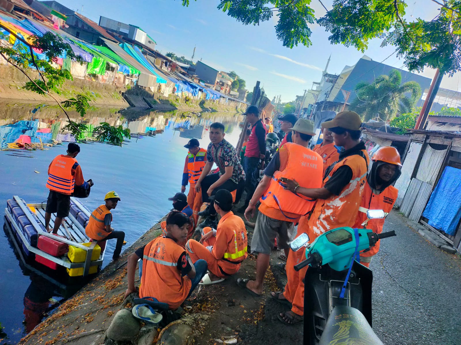 Terlihat dilokasi, satgas menerjungkan perahu rakit untuk mengambil sampah kanal.