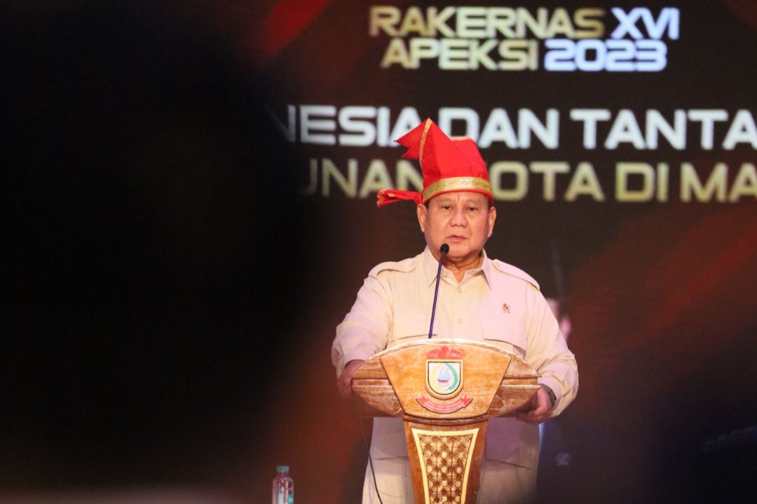 Prabowo hadir dalam rakernas apeksi XVI di Upperhils, Kamis (13/07/2023) sore tadi.