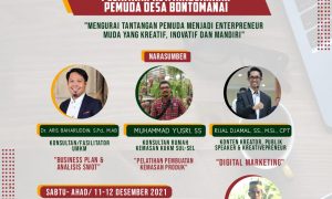MAKASSAR, EDUNEWS.ID – Karang Taruna Desa Bontomanai akan menggelar Pelatihan Kewirausahaan Pemuda di Aula Kantor Desa Bontomanai, Kecamatan Bungaya, Kabupaten Gowa, Provinsi...